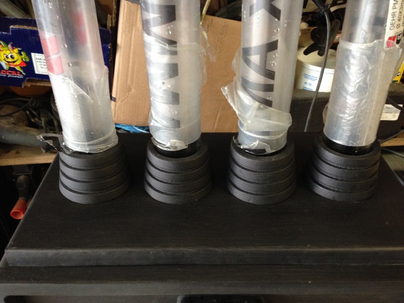 Je voulais pouvoir éclairer l’intérieur des tubes pour que ce soit un peu plus sympa, pour ça j’ai acheté des LED bleues 12v dernière génération très puissantes que j’ai fixé sur un support en aluminium juste en dessous des tubes.